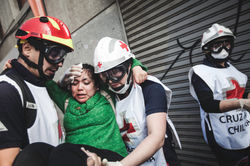 ![]() A woman protests for women's rights late in Santiago downtown. | ![]() A woman that was beaten by police forces is taken care of by the red cross volunteers. | ![]() A bird in its cage at the "Buiz Zoo". |